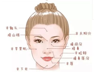 4、面部塑形:改善额头、唇部、鼻部、下巴,填充苹果肌、太阳穴。